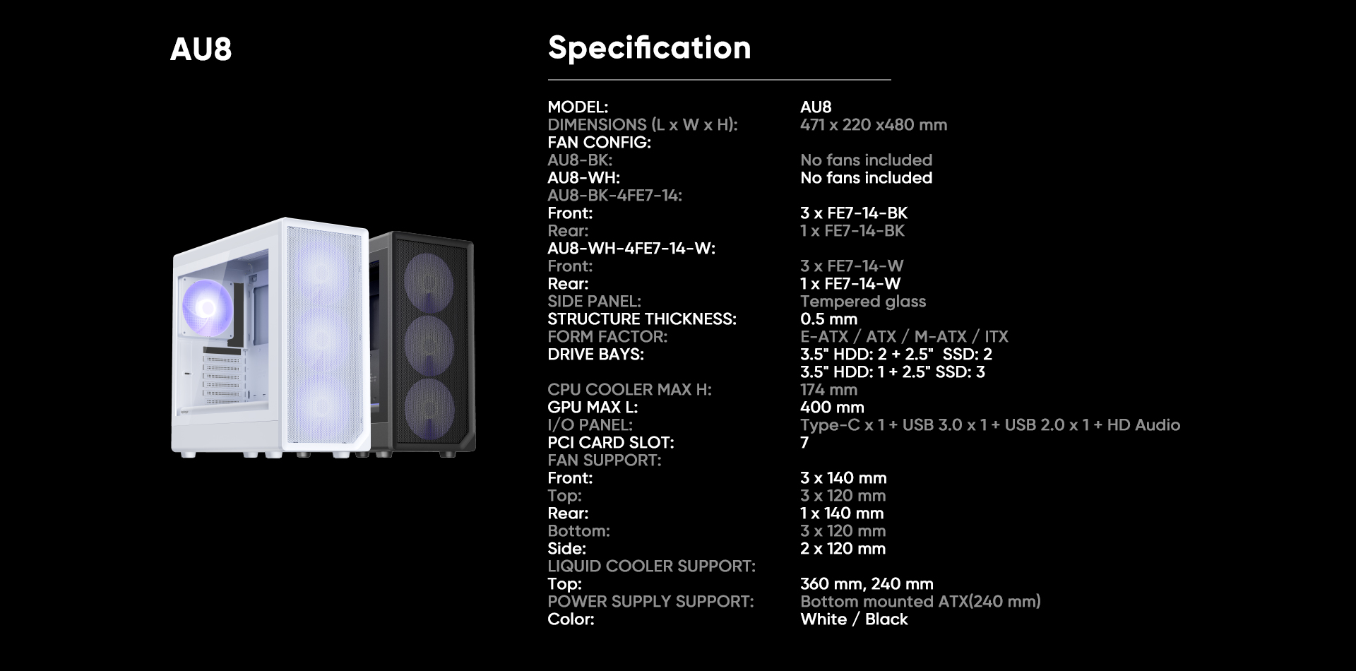 *Computer parts are not included. Cooling fan may vary among different countries/regions.