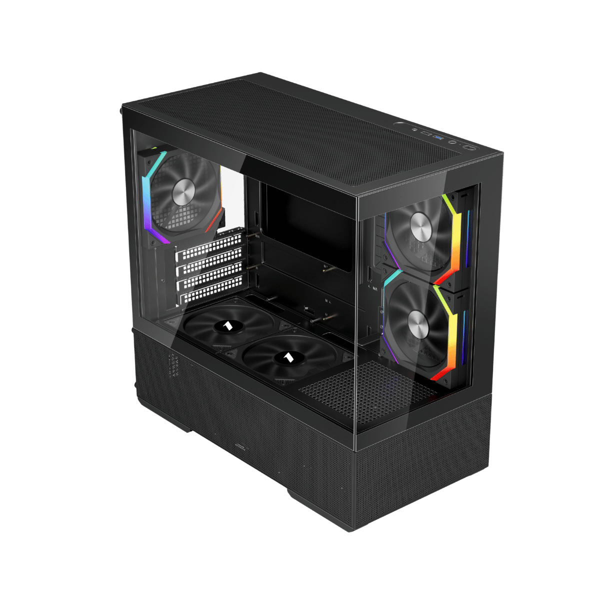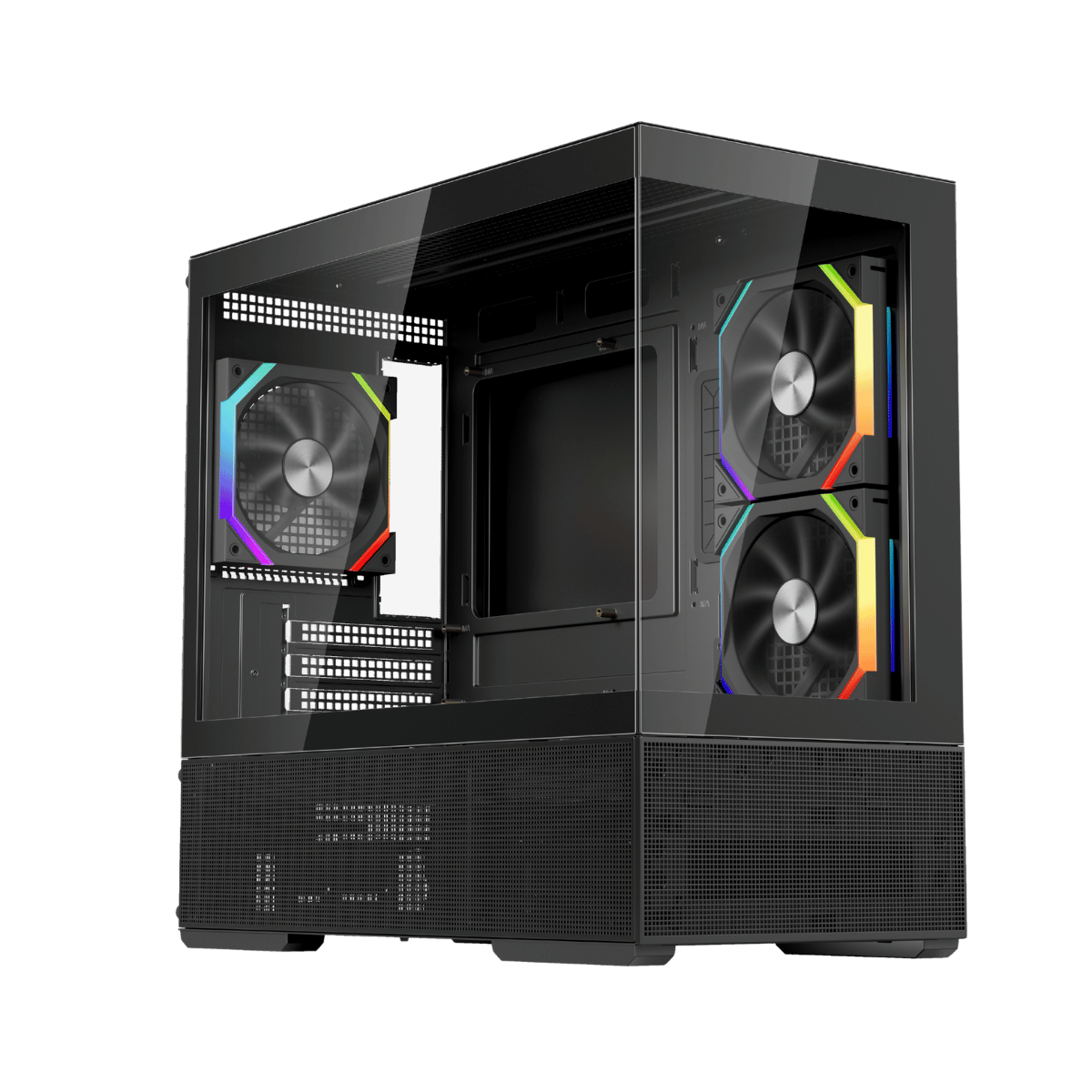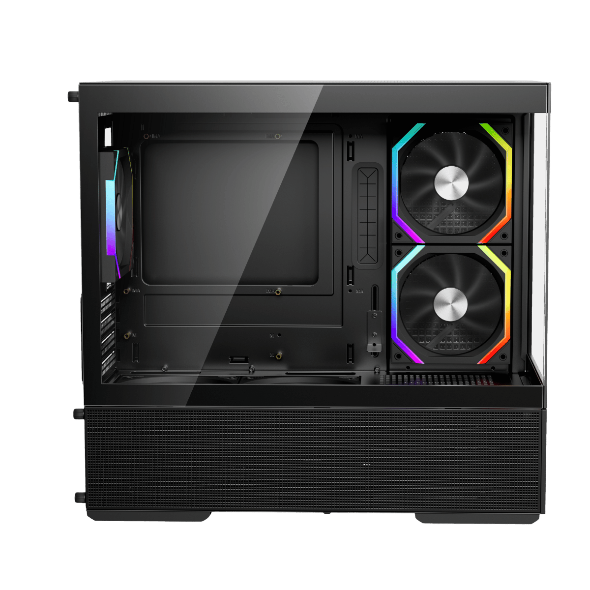Recessed bottom fan mounts keep fans flush with the case, preserving a sleek, clean aesthetic