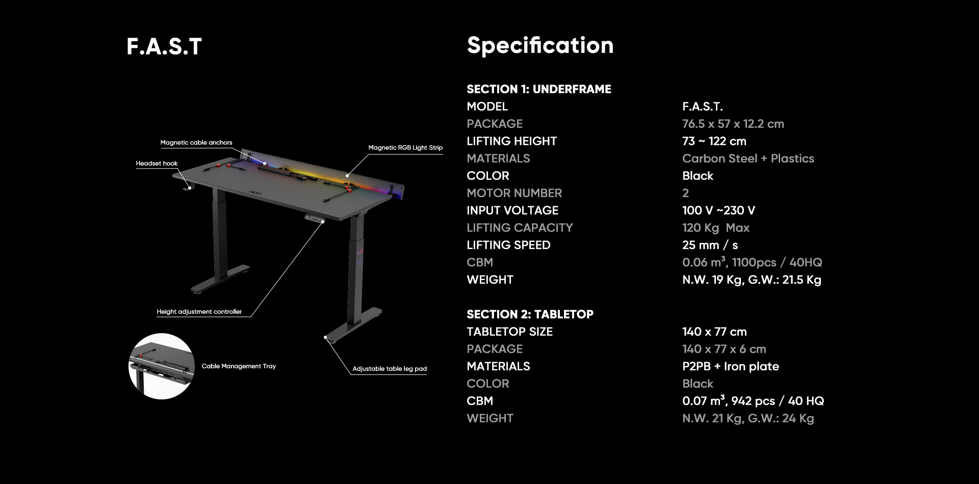 Underframe: N.W.19Kg G.W.: 21.5Kg