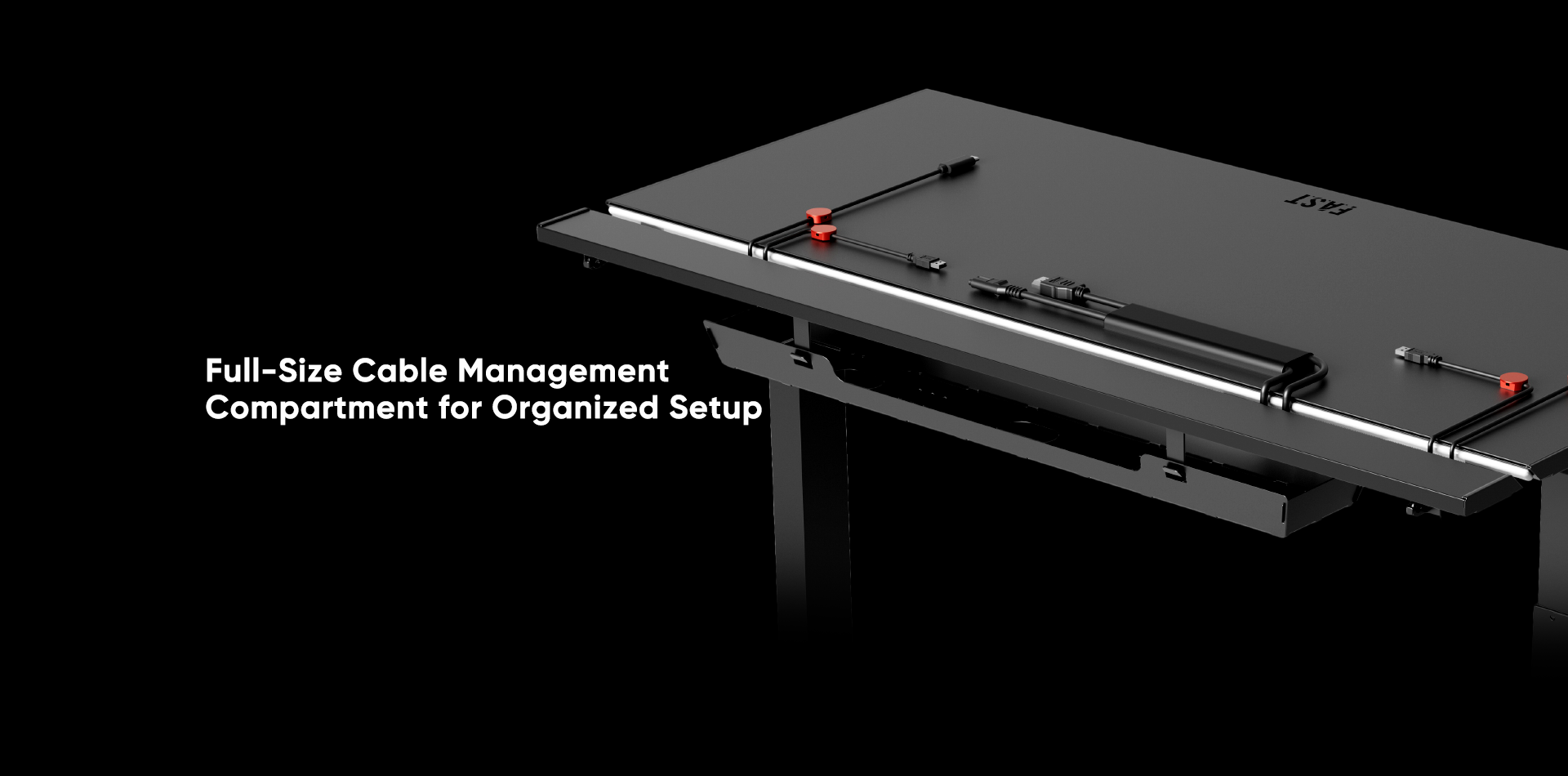 Rear hinged cable panel and full-sized cable management compartment keeps your space clean and tidy