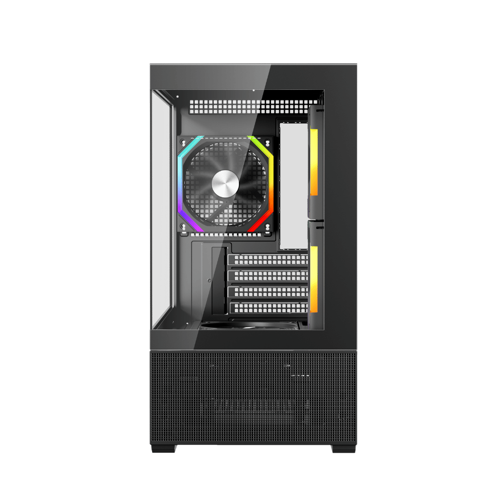 Recessed bottom fan mounts ensure installed fans sit flush with the case