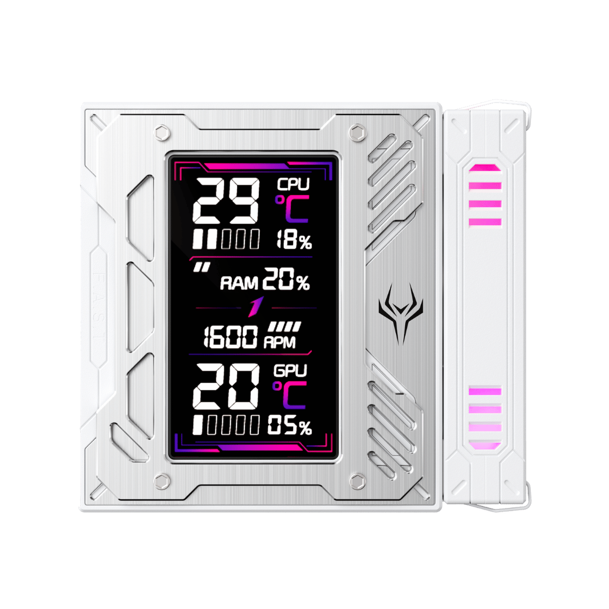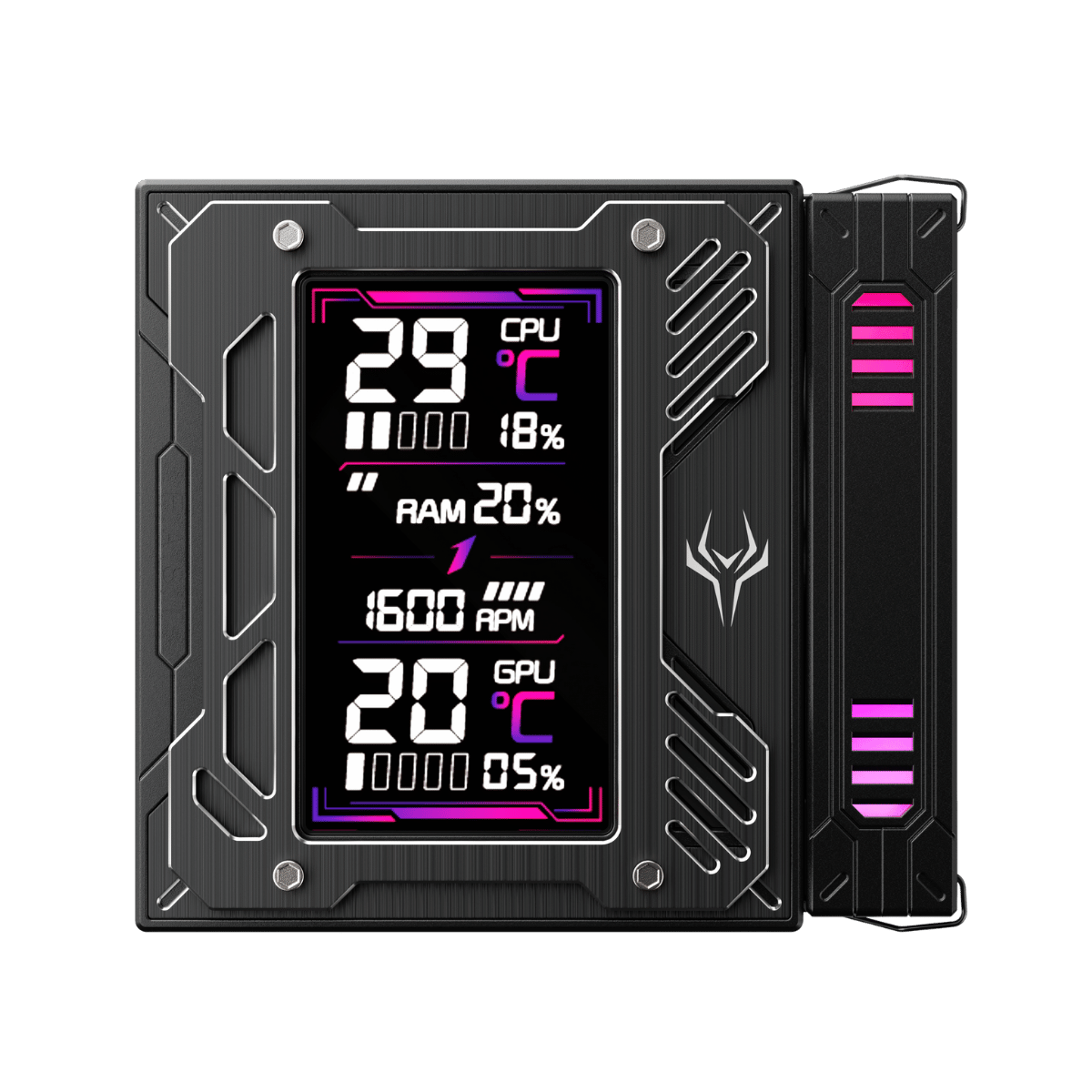 Integrated Display Screen: Real-time CPU/GPU temps & usage, fan speed, RAM usage